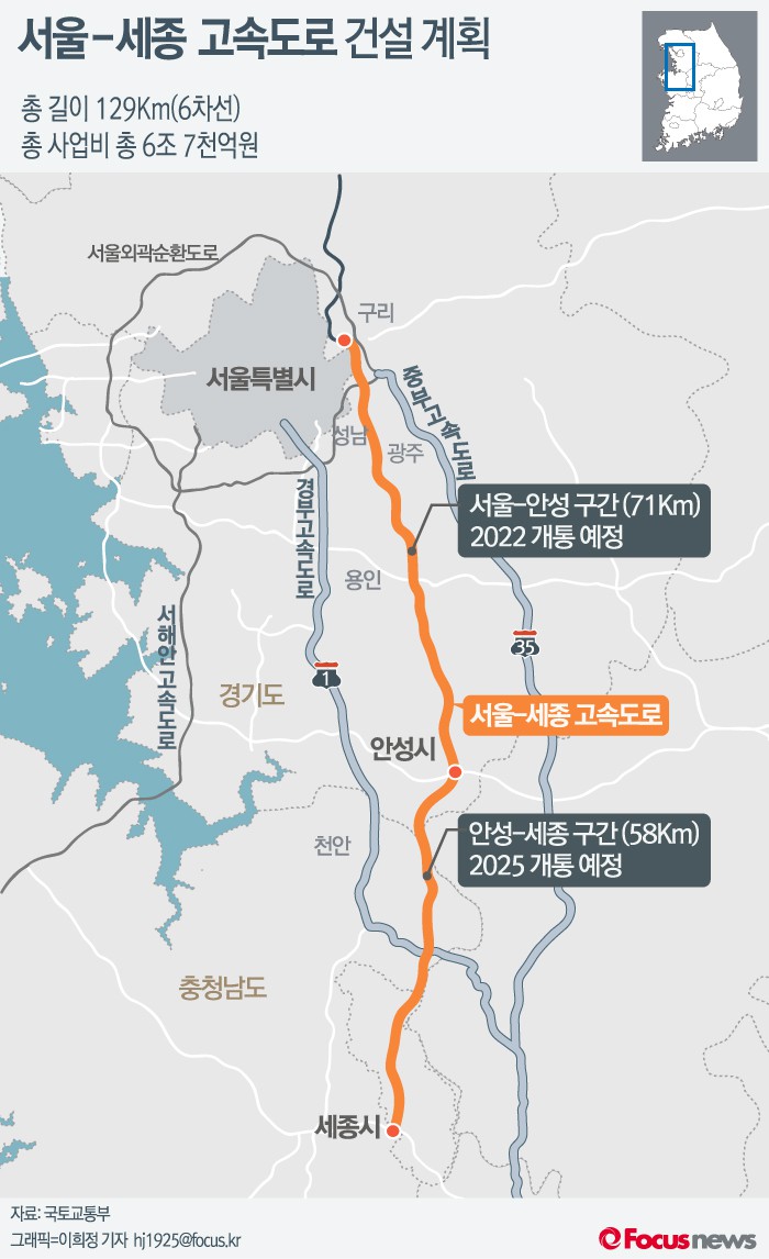 전체 사업구간을 민자사업으로 추진하지만 서울-안성 구간(71㎞)은 사업의 시급성을 고려해 한국도로공사에서 우선 착수하고 민자사업으로 전환하는 방식으로 추진된다.