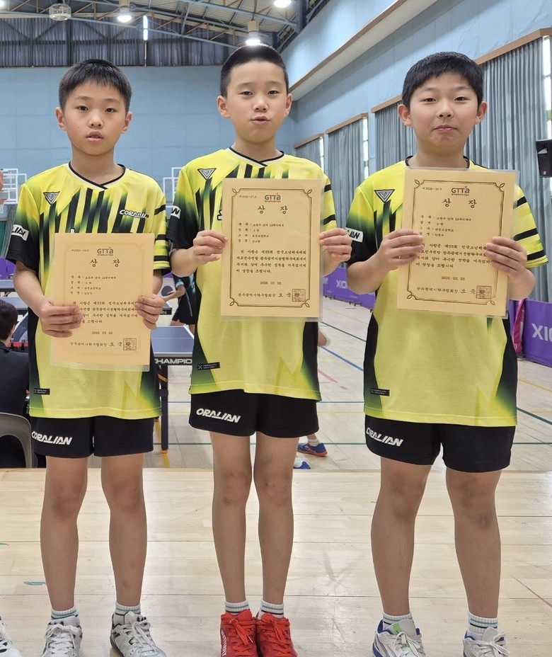 이어 28일 송정초등학교 강당에서 열린 ‘제55회 전국소년체육대회 광주광역시 최종 예선’ 초등부 남자 단식에서도 1위를 차지하며 차세대 탁구 유망주로 눈도장을 찍었다. 이에 따라 강 학생은 전국소년체육대회에 광주광역시 대표로 출전하게 된다.