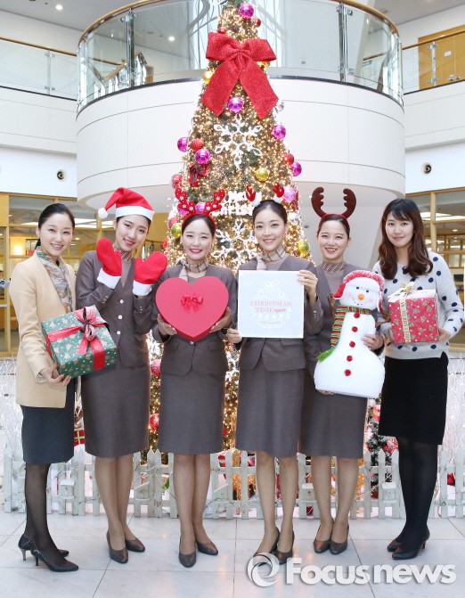 △ 아시아나항공 임직원들이 강서구 오쇠동 아시아나타운 본관에 설치된 크리스마스 트리 앞에서 크리스