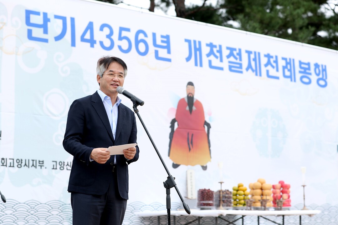 이동환 고양특례시장은 “이번 개천절 제천례는 ‘널리 세상을 이롭게 하고 다스려 교화시킨다’는 단군의 정신이 우리의 가슴 속에 여전히 살아 숨 쉬고 있음을 확인하는 뜻깊은 시간”이라며 “제천례가 자랑스러운 단군의 자손으로서 시민 모두 하나 되어 고양성공시대, 시민행복시대로 나아가는 계기가 되기를 소망한다”라고 말했다.