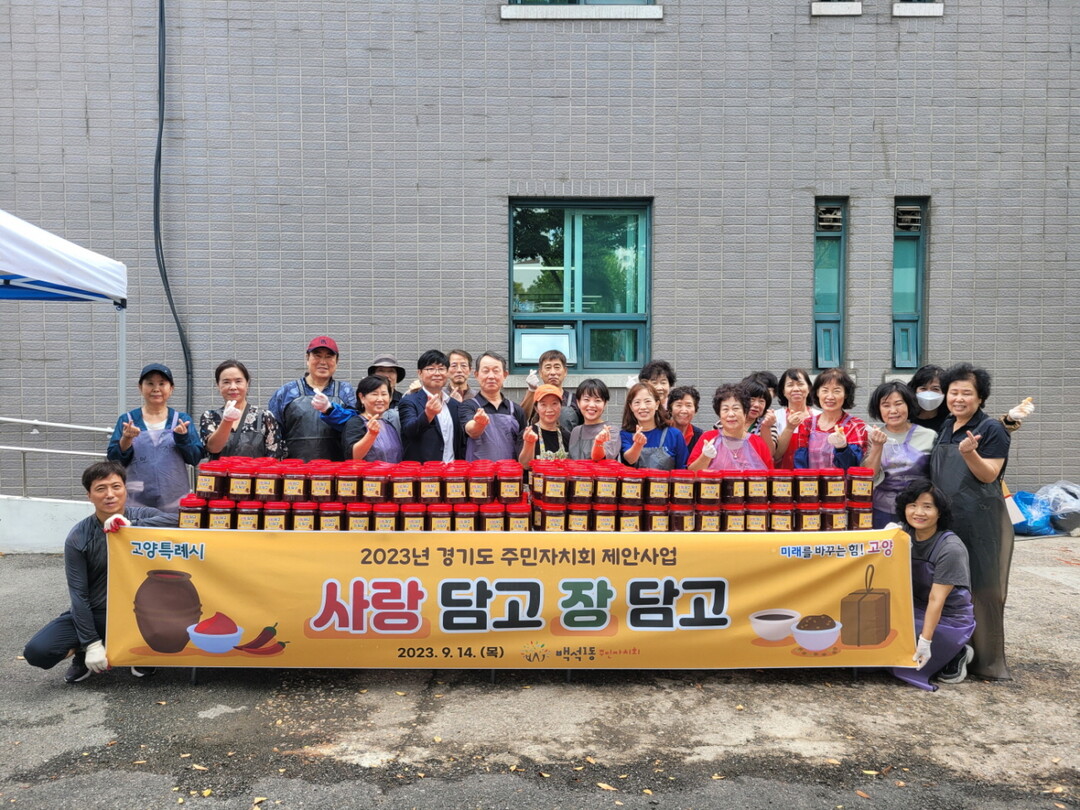 [부자동네타임즈 = 김인수 기자] 고양특례시 백석1동 주민자치회는지난 14일 동 행정복지센터에서‘사랑 담고 장 담고’행사를 개최하고 직접 만든 고추장 나눔 봉사를 실시했다.