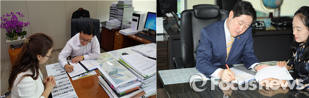 (서울=포커스뉴스) NH농협은행은 이동필 농림축산식품부 장관(왼쪽)과 유기준 해양수산부 장관(오른쪽)이 지난 1일 정부세종청사 집무실에서 ‘청년희망펀드’에 가입했다고 2일 밝혔다.