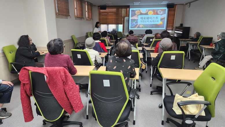 ▲ 지난해 4월 수정노인종합복지관에서 탄소중립 관련 제로웨이스트에 관한 교육 진행 중이다