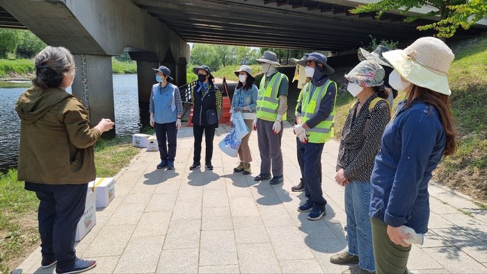 하천정화 활동을 위해 고양줌센터에서 직접 만든 EM흙공 350여개를 지원하고 한류천에서 생태모니터링 활동을 하고 있는 고양시하천사랑연구회와 한류천을 자주 이용하는 시민 16명이 함께 EM흙공을 던졌다.
