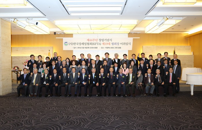 | △ 한국장례업협회가 19일 서울 더팔래스호텔 그랜드볼룸에서 협회창립 제44주년 기념식 및 회장 이·취임식 후 가진 기념촬영. |
