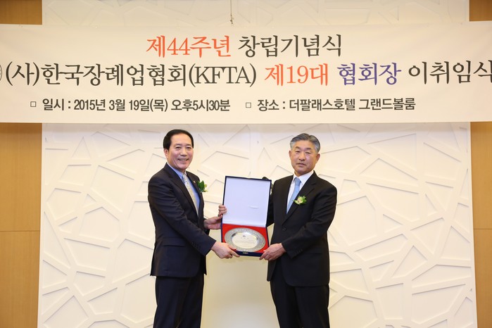 한편, 전임 박귀종 회장은 재임기간동안 양분돼 있던 전문장례식장업계와 병원장례식장 업계를 한국장례업협회로 2013년 10월24일 통합시켰으며 지난해는 장례식장 규정을 15년 만에 신고제와 시설규정 등이 반영된 장사 등에 관한 법률을 새로 추가시키는 등의 성과를 남겼다.