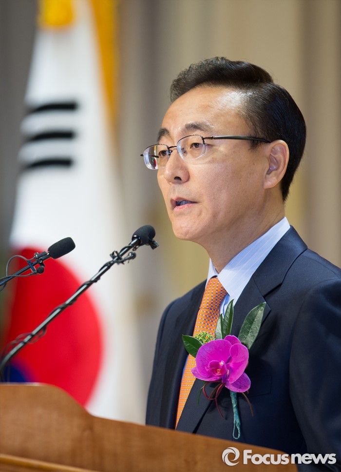 | △ 김수남 신임 검찰총장이 2일 오전 서울 서초구 대검찰청에 열린 '제41대 김수남 검찰총장 취임식'에 참석해 취임사를 하고 있다.<사진제공=포커스뉴스> |