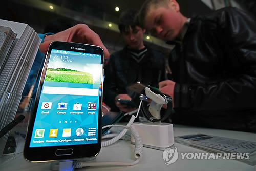 | △ 갤럭시S5 11일 세계시장 공식 출시 (알마티=연합뉴스) 김현태 특파원 = 삼성전자의 갤럭시S5가 11일 세계 시장에 공식 출시된다. 출시 하루전인 10일(현지시간) 카자흐스탄 알마티에서 열린 체험행사에서 현지인들이 갤럭시S5를 살펴보고 있다. 갤럭시S5는 갤럭시S 시리즈 가운데 처음으로 5인치가 넘는 화면을 장착했다. 카메라 이미지 센서의 성능을 높인 아이소셀 방식의 1천600만화소 카메라를 장착했으며, 패스트오토포커스 기능을 이용해 초점 속도가 0.3초까지 빨라졌다. 일상생활에서 물기나 이물질에 노출되지 않도록 IP67 수준의 생활방수·방진이 가능하도록 했다. 2014.4.10 mtkht@yna.co.kr |