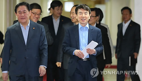 (서울=연합뉴스) 박성민 조성흠 기자 = 정부와 청와대는 1일 오전 정부서울청사에서 내각의 모든 장관들과 청와대 주요 수석들이 참석한 가운데 정책조정강화회의를 개최했다.