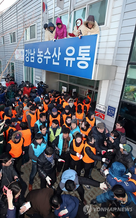 (서울=연합뉴스) 이신영 기자 = 서울 개포동 농수산물 직거래용 가설점포에 대한 강남구청의 철거작업이 잠정 중단되게 됐다.
