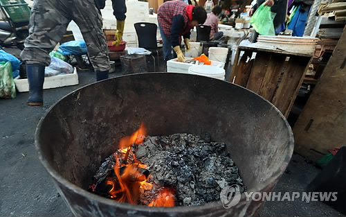 기상청은 월요일인 9일도 서울의 아침 기온은 영하 12도까지 내려가는 등 추위가 맹위를 떨칠 것으로 내다봤다.