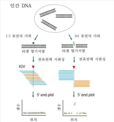연구진이 개발한 방법(Digenome-seq)은 인간 DNA를 크리스퍼 유전자가위로 처리한 다음 유전체 염기서열을 분석, 크리스퍼 유전자가위에 의해 잘리지 않아야 하는 비표적 염기서열이 절단된 게 있는지 정확히 확인할 수 있다.