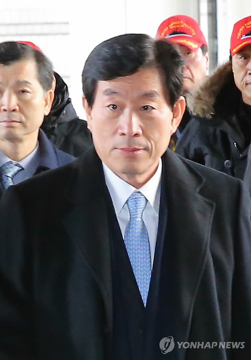△ 원세훈 전 국정원장 법정구속 (서울=연합뉴스) 공직선거법과 국정원법위반 혐의로 기소된 원세훈 전 국정원장이 항소심 선고공판을 위해 9일 오후 서초동 서울고등법원으로 들어서고 있다. 국가정보원 대선개입 의혹 사건으로 1심에서 집행유예를 선고받았던 원 전 원장은 이날 항소심에서 실형을 선고받고 법정구속됐다.