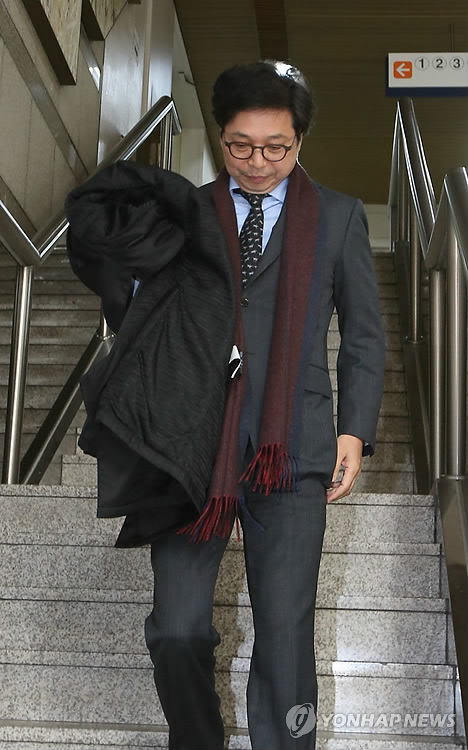 | △ '불공정 주식거래' 박근혜 대통령 조카사위 집행유예 (서울=연합뉴스) 서명곤 기자 = 자본시장과 금융투자업에 관한 법률 위반 혐의로 기소된 박영우 대유신소재 회장이 10일 오후 서울 서초구 서초동 서울고법에서 징역 1년에 집행유예 2년을 선고받은 뒤 법정을 나서고 있다. |