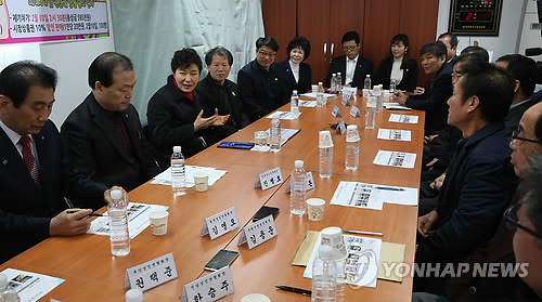 | △ 전국상인회장들과 간담회하는 박 대통령 (서울=연합뉴스) 도광환 기자 = 박근혜 대통령이 10일 오후 서울 광진구 중곡제일골목시장을 방문, 전국상인회장들과 간담회를 하고 있다. |