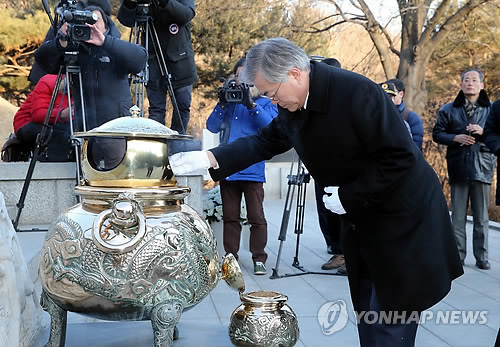 △ 고(故) 박정희 전 대통령 묘역 참배하는 문재인 (서울=연합뉴스) 이상학 기자 = 새정치민주연합 문재인 대표가 9일 오전 동작구 국립서울현충원 고(故) 박정희 전 대통령 묘역을 참배하고 있다.