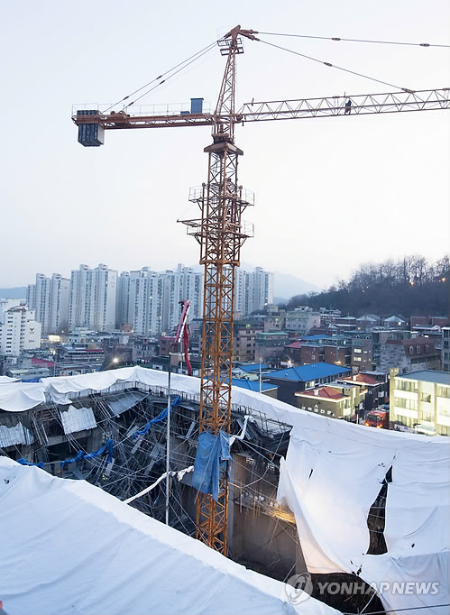 | △ 사당종합체육관 천장 붕괴 사고 (서울=연합뉴스) 윤동진 기자 = 11일 오후 서울 동작구 사당동 사당종합체육관 신축공사장 매몰 현장에서 소방대원들이 구조활동을 벌이고 있다. |