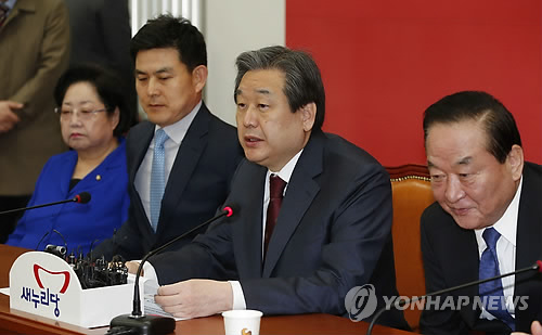 (서울=연합뉴스) 김병수 류미나 기자 = 새누리당 김무성 대표는 12일 야당에서 당초 이날 오후 합의한 이완구 국무총리 후보자 인준안 처리를 위한 본회의 개최를 설 연휴 이후로 연기해 줄 것을 제안한 데 대해 반대입장을 밝히고 야당에 인준안 처리 협조를 촉구했다.