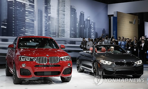 △ 지난해 경기회복과 실업률 하락, 유가하락 등에 따른 소비자 수요가 늘어난데 힘입어 미국 자동차산업은 근 10년만에 최고의 판매실적을 올렸다. 사진은 미국 뉴욕 오토쇼(EPA=연합뉴스 자료사진)