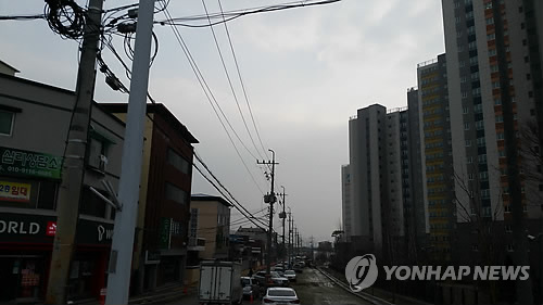 | △ 주민 갈등에 갈 곳 잃은 전봇대 (안동=연합뉴스) 이덕기 기자 = 입주를 앞둔 경북 안동시 당북동 자이아파트 앞 소방도로상의 전봇대 10여 개가 아파트와 기존 단독주택 주민간 갈등으로 갈 곳을 잃었다. 2015.2.17. duck@yna.co.kr |