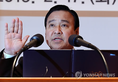 | △ 이완구 총리, 취임선서 (서울=연합뉴스) 전수영 기자 = 이완구 신임 총리가 17일 오후 서울 도렴동 정부서울청사별관에서 취임선서를 하고 있다. |
