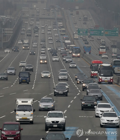 | △ 고속도로 정체 시작 (성남=연합뉴스) 이상학 기자 = 설 연휴를 하루 앞둔 17일 오후 경기도 성남시 분당구 궁내동 서울 톨게이트 인근 경부고속도로 하행선이 귀성차량으로 붐비고 있다. |