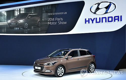△ 현대차는 작년 연말에 출시된 신형 i20의 판매 호조로 지난 1월 유럽 전체 판매 성장률(6.2%)을 뛰어넘었다. 사진은 '2014파리 모터쇼'에서 공개된 신형 i20.(현대차 제공)