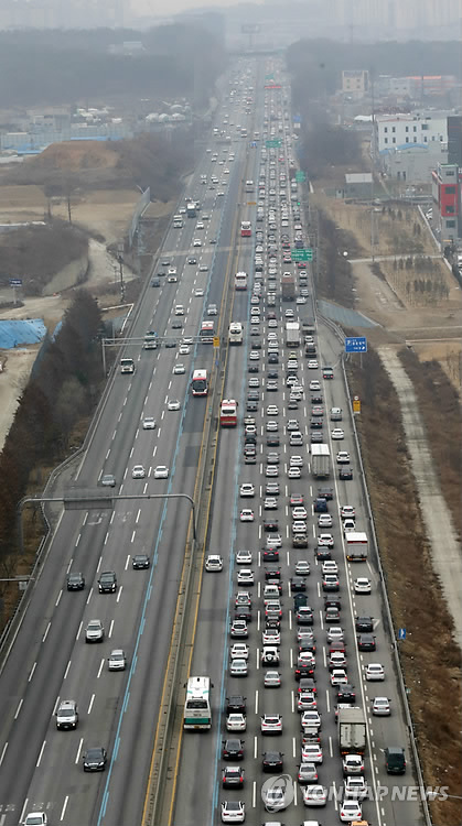 한국도로공사에 따르면 오후 4시 현재 승용차를 타고 서울에서 출발해 부산으로 갈 경우 요금소 도착 기준으로 7시간이 걸린다. 2시간 전보다 1시간여 빨라졌지만 정체는 계속됐다.