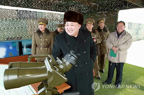 △ 북한 김정은, 서해 섬 타격·상륙 연습 시찰 (서울=연합뉴스) 노동당 기관지 노동신문은 "조국통일의 위업을 성취하려는 장병들의 멸적 의지가 타 번지는 격동적인 시기에 조선인민군 제4군단 관하 군인들의 섬 화력 타격 및 점령을 위한 연습이 진행됐다"고 21일 밝혔다. 그러나 구체적인 훈련 일시와 장소 등은 밝히지 않았다. 신문은 이 타격 연습이 "제1위원장이 직접 발기한 것"이라며 "서남전선부대 장병들의 가슴은 미제 승냥이들과 그 추종 무리에 대한 천백 배의 복수심으로 세차게 끓어번지고 있었다"며 미국을 겨냥한 것임을 분명히했다. 2015.2.21 nkphoto@yna.co.kr