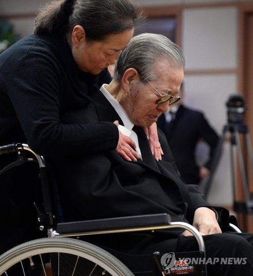 김 전 총리는 이날 오전 10시40분께 빈소에 도착해 영정사진을 쳐다보며 눈물을 흘렸다. 휠체어를 탄 김 전 총리는 빈소 옆 작은방에서 온종일 문상객을 일일이 맞았고 입관식을 지켜본 뒤 저녁 9시20분께 귀가했다.