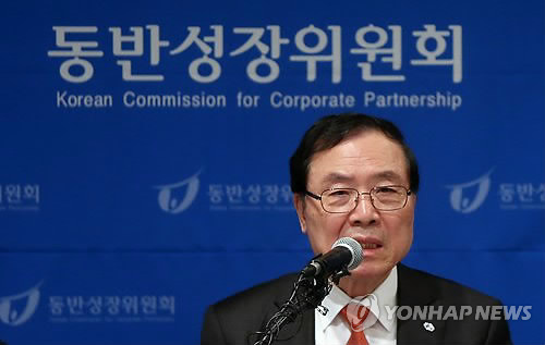 △ 동반위, 중소기업 적합업종 발표 (서울=연합뉴스) 이지은 기자 = 안충영 동반성장위원장이 24일 오전 서울 서초구 반포동 팔래스호텔에서 열린 기자회견에서 중소기업 적합업종을 발표하고 있다.