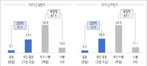 모든 업종에서 부정적인 의견이 많은 가운데 섬유·의복(90%) 업종에서 그 비율이 가장 높았고 기계(72.0%)와 금속(66.0%) 업종이 뒤를 이었다.