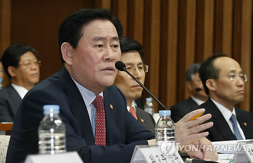 | △ 자원외교특위 출석한 최경환 부총리 (서울=연합뉴스) 이상학 기자 = 최경환 경제부총리 겸 기획재정부 장관이 24일 국회에서 열린 해외자원개발 진상규명을 위한 국정조사특별위원회에서 의원들의 질의에 답변하고 있다. |