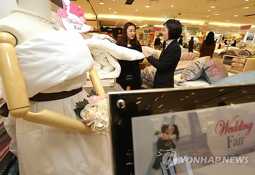 (서울=연합뉴스) 김아람 기자 = 각 백화점이 불황 속 단비 같은 큰손 고객인 신혼부부를 잡기 위해 대규모 웨딩 행사를 펼친다.