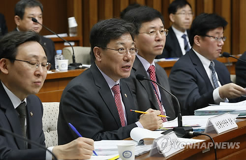 | △ 자원외교특위 출석한 윤상직 장관 (서울=연합뉴스)이상학 기자 = 윤상직 산업통상자원부 장관이 25일 국회에서 열린 해외자원개발 진상규명을 위한 국정조사특별위원회에서 의원들의 질의에 답하고 있다. |