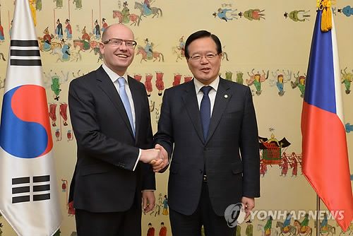 정 의장은 또 체코 정부가 현대모비스와 넥센타이어의 현지 진출을 지원한 점에 사례하고 "앞으로 체코의 파르부디체 국제공항 확장, 고속도로 건설, 원자력, 방위산업 등 부가가치가 높은 분야에 대한 협력으로 이어질 필요가 있다"고 강조했다.