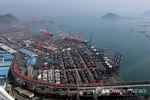 | △ 지난달 수출액이 414억5천600만달러로 지난해 같은 달보다 3.4% 줄어든 것으로 잠정 집계됐다고 산업통상자원부가 1일 발표했다. 부산 감만부두. (연합뉴스 자료사진) |