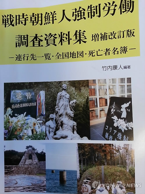 | △ 日역사연구자, 강제동원 조선인 사망자 명부 발간 (도쿄=연합뉴스) 조준형 특파원 = 일본인 역사 연구자가 30년 가까이 자국 각지를 다니며 파악한 일제 강점기 강제동원 조선인 사망자 1만여명의 명단을 책으로 펴냈다. 조선인 강제징용 문제에 천착해온 현대사 연구자 다케우치 야스토(58·竹內康人) 씨는 '전시(戰時) 조선인 강제노동 조사자료집-연행처 일람·전국지도·사망자 명부'(사진)를 1월말 발간했다. |