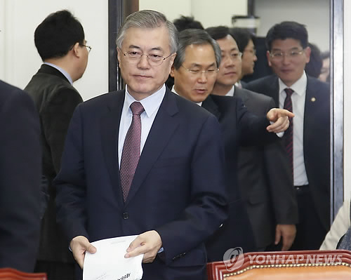 | △ 최고위원회의 참석하는 문재인 대표 (서울=연합뉴스) 이상학 기자 = 새정치민주연합 문재인 대표와 최고위원들이 2일 오전 국회에서 열린 최고위원회의에 참석하고 있다. |