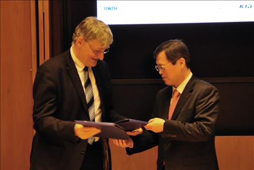 | △ 한국산업기술진흥원(KIAT)이 2일(현지시간) 독일 아헨에서 아헨공과대학교와 인력·정보 교류를 위한 업무협약(MOU)을 체결했다. |
