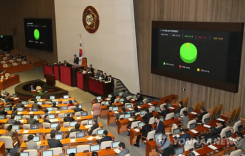 개정안은 본회의에서 재석 232명 가운데 찬성 222명, 기권 10명으로 가결됐다.