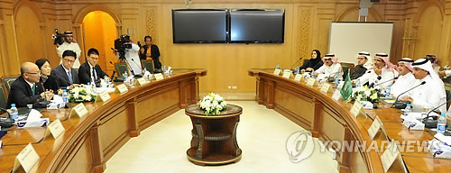 | △ 한국 보건의료, 제약 및 의료기관 사우디 진출 합의 (서울=연합뉴스) 보건복지부와 사우디 보건부가 지난 3일 사우디에서 회담을 하고 한국형 의료기관 위탁운영시스템의 사우디 진출 등 보건의료분야 전반으로 협력을 확대하는 방안을 논의했다. 문형표 복지부 장관(왼쪽)과 알 카팁 사우디 보건부 장관이 회담하고 있다. 2015.3.4 << 보건복지부 제공 >> photo@yna.co.kr |