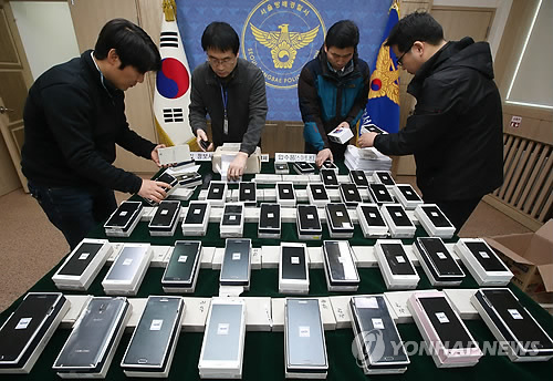 경찰 조사 결과 장씨 등이 가로챈 휴대전화는 70대(시가 7천만원)에 달했다. 이중 약 20대가 중국 등으로 넘어갔다.
