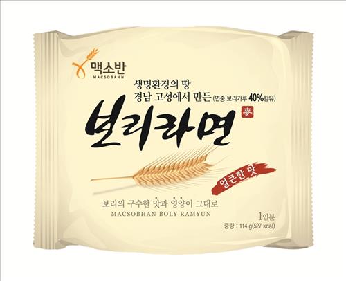 밀가루를 전혀 사용하지 않고 경남 고성의 국내산 보릿가루와 곡류 단백질인 밀 글루텐을 사용해 만든 라면이다.