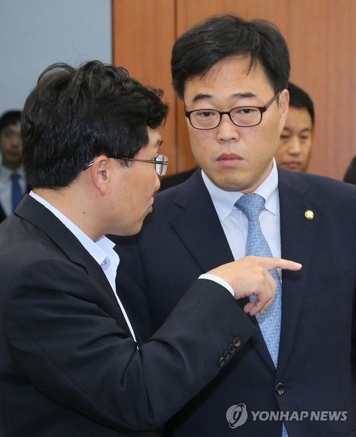 | △ 국회 정무위 소속 새누리당 김용태 의원(왼쪽)과 새정치민주연합 김기식 의원 |