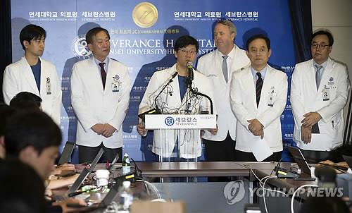 | △ 5일 오후 서울 세브란스병원에서 마크 리퍼트 미국 대사 수술 주치의인 유대현 성형외과 교수가 수술 상황을 설명하고 있다. |