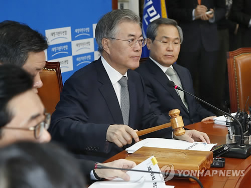 | △ 최고위원회의 주재하는 문재인 대표 (서울=연합뉴스) 이상학 기자 = 새정치민주연합 문재인 대표가 6일 오전 국회에서 최고위원회의를 주재하고 있다. |