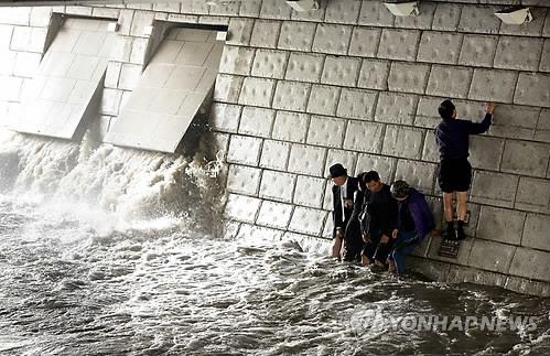 지난해 9월에는 청계천 두물다리 아래 산책로에서 70대 남성 2명과 여성 1명이 강한 소나기에 고립됐다 빠져나왔고, 2012년 10월에는 15분 폭우에 청계4가 배오개다리 인근 청계천변을 산책하던 김모(61)씨 등 13명이 고립됐다 구조됐다.