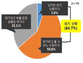 전문가들이 현 경제상황을 위기로 보는 가장 중요한 이유(복수응답)로는 중국 기업들과의 지속적인 기술격차 감소 및 신성장동력 부재(15명)와 가계부채의 지속적 증가로 인한 내수둔화(15명)가 꼽혔다.