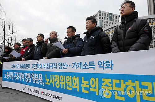 노사정위에 참여하지 않는 민주노총도 장외에서 "기만이 예정된 논의에는 아무것도 기대할 것이 없다. 이에 맞서 우리는 총파업으로 노동자의 이해와 진정한 사회적 공익을 실현시킬 것"이라고 목청을 높였다.